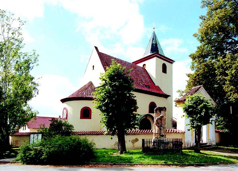1. Kostel sv. Václava - Evidenční list kulturní památkyNejvýznamnější hrusickou kulturní a architektonickou památkou je farní kostel sv. Václava. V předlouhé historii hrusické farnosti nalezneme první zmínku o sakrální stavbě před rokem 1200. Pole a lesy u Lensedel se i s kaplí sv. Vojtěcha připomínají jako majetek ostrovského kláštera. V první polovině Xlll. století zde byl vystavěn kostel zasvěcený sv. Václavu. Ve XIV. století je již zmiňován jako kostel farní, ke kterému mají tzv. podací právo páni z Dubé, sídlící na hradě Zlenice u řeky Sázavy. V roce 1466 byl kostel i s farností přičleněn k panství Komorní Hrádek. V XVI. století byl samotný kostel přesvěcen sv. Mikuláši. V roce 1624 již není hrusická farnost zmiňována jako samostatná, nýbrž je dána i s farním kostelem pod správu sousední farnosti mnichovické. Když byla v roce 1785 hrusická farnost opět povýšena na tzv. lokálii, byl farní kostel zasvěcen patronu české země sv. Václavu. Jako farní sloužil kostel sv. Václava méně i lež sto let od roku 1856 až do roku 1953. Architektonicky se jedná o původně románský kostel zakončený typickou apsidou. V druhé polovině XVI. století byly provedeny vnitřní stavební úpravy: zvýšení podlah, nahrazení původních románských a gotických oken současnými a náhrada dřevěného stropu klenbou. Později byly prováděny ještě drobné barokní úpravy. Zdaleka nejcennější součástí kostela sv. Václava je románský ústupkový portál se sloupy a rustikální dekorativní výzdobou archivolty a figurální výzdobou tympanonu. Tento portál v severní stěně kostela byl pravděpodobně zazděn v XVI. století v souvislosti se stavebními úpravami, neboť bylo nutné posílit severní stěnu ve vztahu k zaklenutí stropu. Objeven byl náhodně, když 9. 6. 1853 při silné bouřce uhodil blesk do kostelní věže a severní stěna kostela praskla.