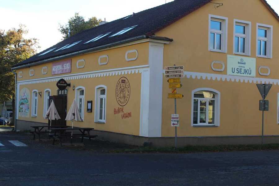 3. Hospoda "U Sejků" - Náves 25Uprostřed hrusické návsi stojí budova hospody "U Sejků", která se díky obrazům a kresbám hrusického rodáka J. Lady stala světoznámou.