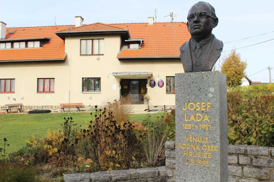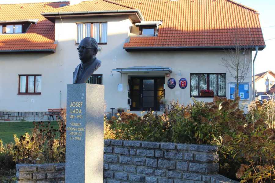 Jedním z dominujících památných objektů současných Hrusic je busta malíře a hrusického rodáka Josefa Lady. Tato busta byla před budovou obecního