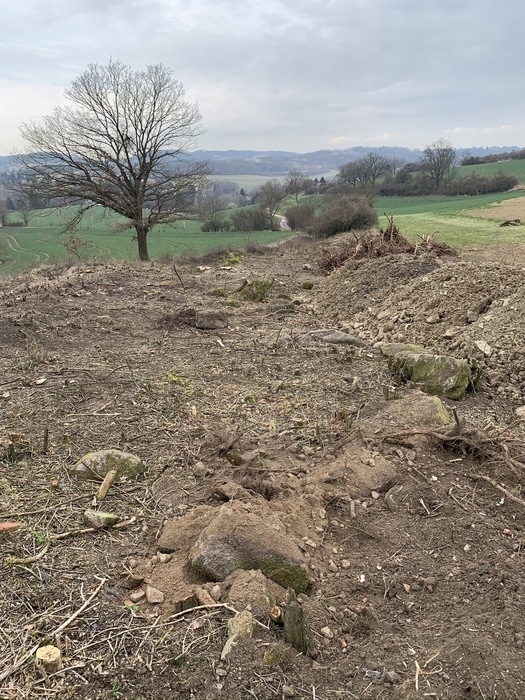 - Následně probíhaly zemní práce, aby se pozemek kultivoval a připravil na výsadbu ovocných stromů